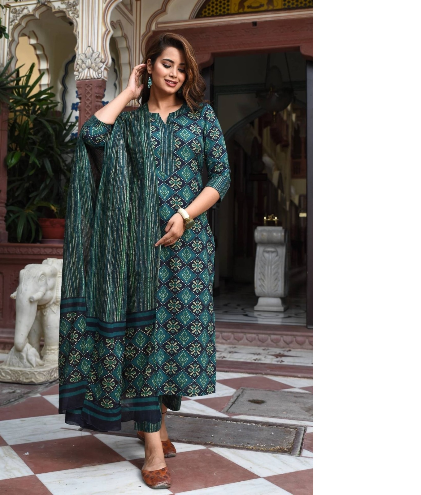 Printed Cotton Blend Straight Kurta Pant Dupatta Set – Stylish & Comfortable Ethnic Wear